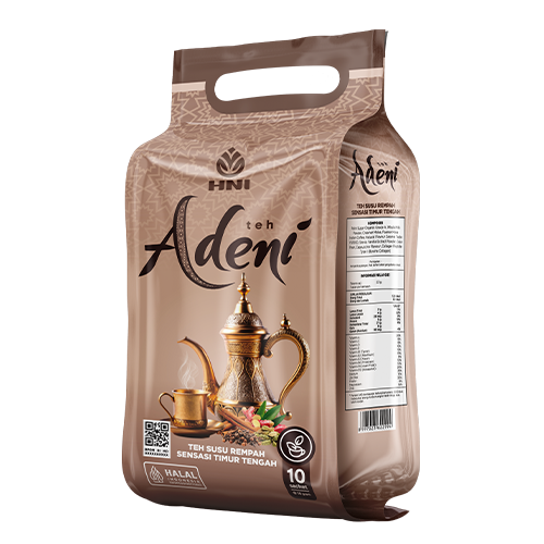 Teh ini mengandung kombinasi rempah alami pilihan sebagai minuman tradisional, meliputi: kayu manis, kapulaga, jahe, lada hitam, dan cengkeh. Tidak perlu repot menyiapkan bahan dan meraciknya, tinggal masukkan satu sachet bubuk Teh Adeni HNI ke dalam cangkir, lalu seduh dengan air panas. Teh susu rempah yang nikmat khas Timur Tengah pun siap diseruput hangat-hangat.