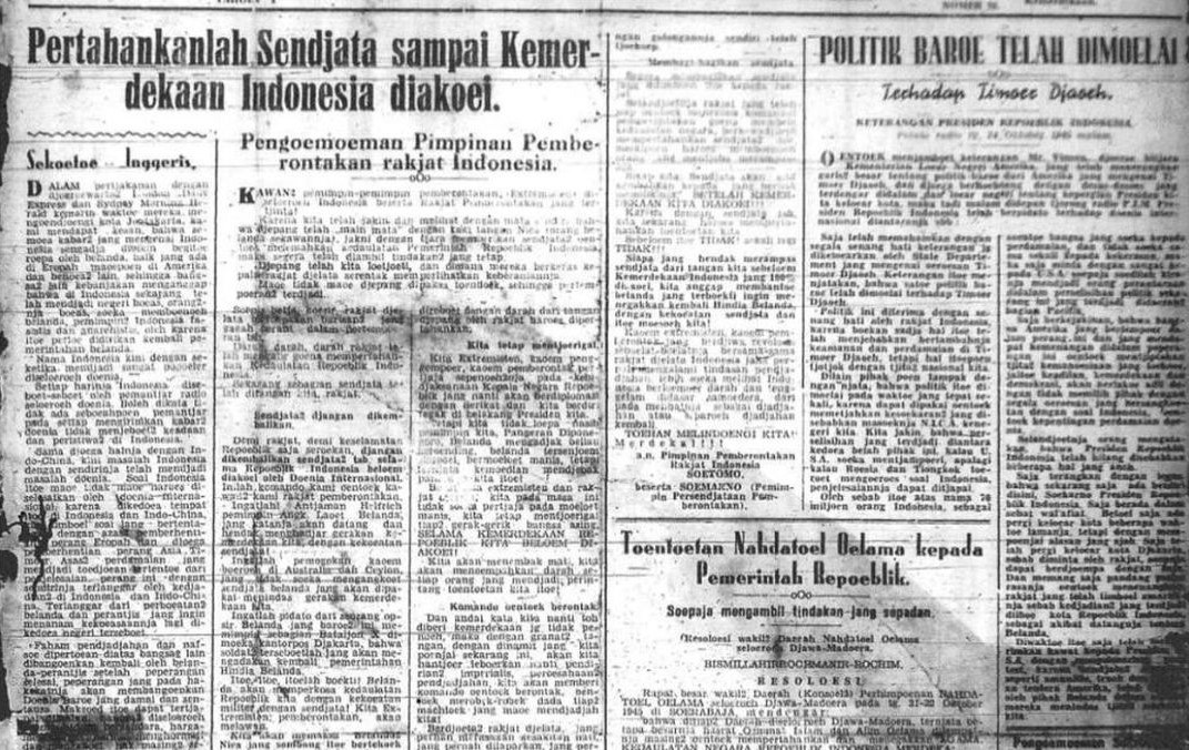 Berita Resolusi Jihad Fii Sabililillah di Kedaulatan Rakyat edisi Jumat Legi, 26 Oktober 1945.